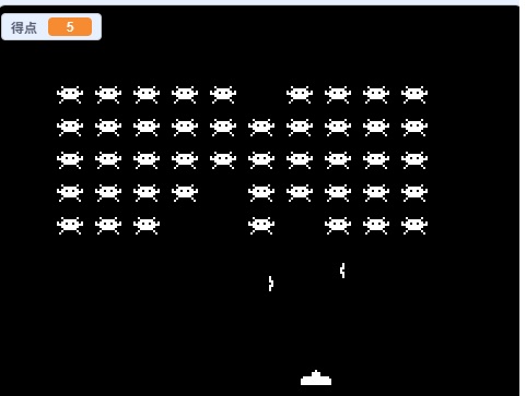 昔、流行ったインベーダーゲームです。やっつけた数が増えると、インベーダーの動きやミサイルの動きが速くなるようにアレンジしてくれました。