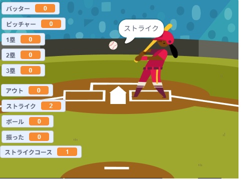 6月から作成した野球ゲームに、次の機能を追加して完成しました。このプログラムはScratchのサイトに公開しています。